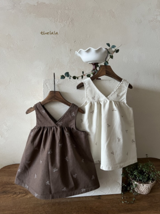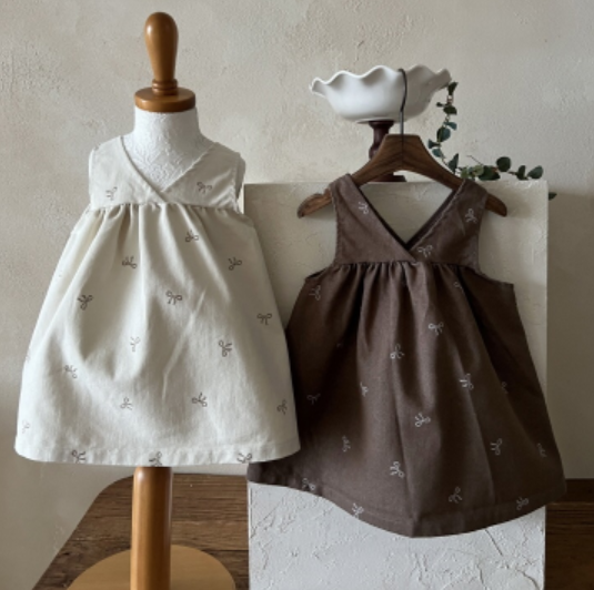 This dress is perfect for showcasing your child's playful charm! The design flares out from the bodice, adding extra cuteness, while the bow-patterned accents enhance its beauty. With its timeless design, it’s a piece that lets your child's sweetness shine anytime, anywhere.